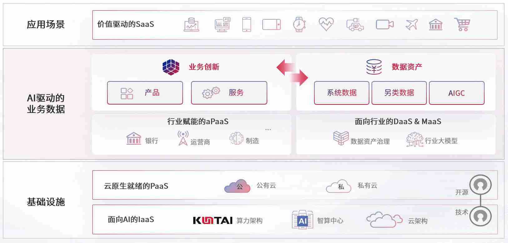 数字时代,,围绕企业数字化转型的关键要素,,,CG钱包数码开创性的提出数云融合战略和技术体系框架,,着力在云原生、、、数字原生、、、AI原生和信创产业上架构产品和服务能力,,,为处在不同数字化转型阶段的快消零售、、汽车、、、金融、、、、医疗、、政企、、教育、、运营商等行业客户提供泛在的敏捷IT能力和融合的数据驱动能力,,,构建跨界融合创新的数字业务场景和新业务模式,,,助力企业级客户建立面向未来的核心能力和竞争优势,,,全面推动社会的数字化、、智能化转型升级。。。